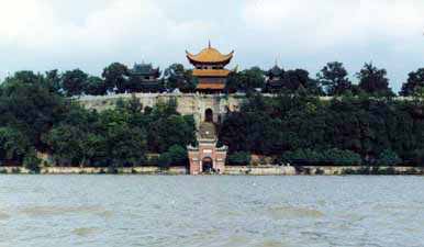 处——城陵矶,有一块名为三江口的地方。从此处远眺洞庭,但见湘江滔滔北去,长江滚滚东逝,水鸟翱翔,百舸争流,水天一色,景色甚是雄伟壮观。刘海戏金蟾、东方朔盗饮仙酒、舜帝二妃万里寻夫的民间传说正是源于此地……湖中最著名的是君山,君山风景秀丽。它是洞庭湖上的一个孤岛,岛上有72个大小山峰,这里每天有渡轮来往航程大约一小时。游览群山需要用一天时间,早上去,下午返。既去了君山,又可畅游洞庭湖,真是一举两得。君山原名洞庭山,是神仙洞府的意思。相传4000年前,舜帝南巡,他的两个妃子娥皇、女英追之不及,攀竹痛哭,眼泪滴在竹上,变成斑竹。后来两妃死于山上,后人建成有二妃墓。二人也叫湘妃、湘君,为了纪念湘君,就把洞庭山改为君山了。现有古迹二妃墓