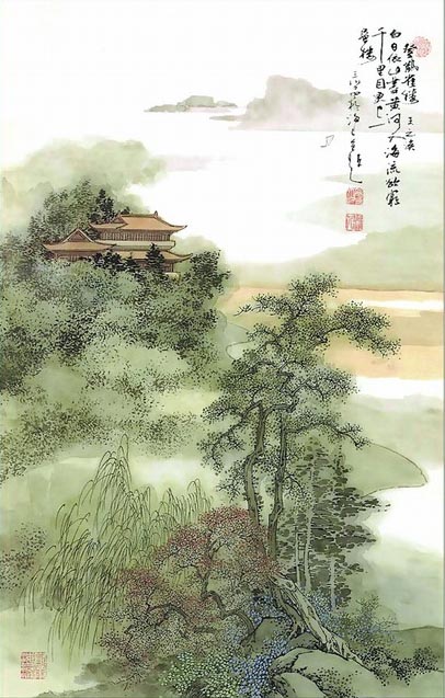 《登鹳雀楼》的诗眼在一“穷”字上。“穷”,“穷尽”的意思。作者好像站在极高之处,俯瞰世界:平视,则见日没西山,一片残阳余晖;俯视,则见黄河回折入海,一曲奔腾乐章。然若想望到一个更开阔、更高远的境界,就要再登高一步,展现一副男儿胸襟!末尾两句,也被人们作为一种追求崇高的精神世界的象征,全诗气势奔放,意境开阔,语言通俗自然。 |