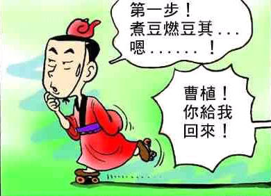 据说,曹丕把曹植召来以后,为了要惩罚他一下,要他在走完七步的时间里做出一首诗。如果做得出,就免他一死。