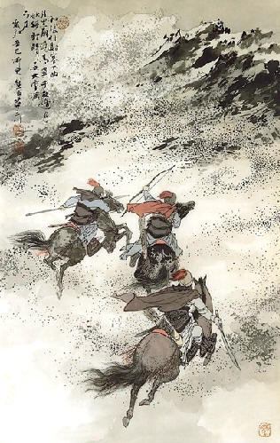 塞下曲四首之三 月黑雁飞高, 单于夜遁逃。 欲将轻骑逐, 大雪满弓刀。 |